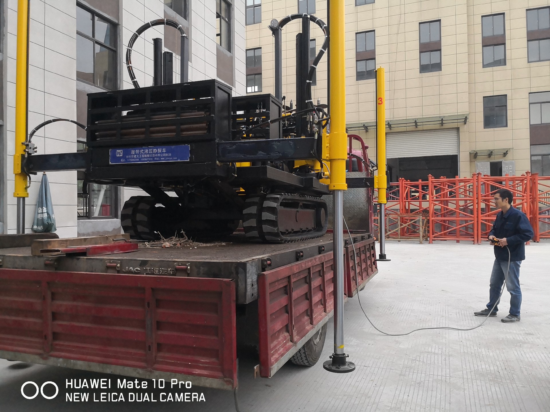 本車自動(dòng)下錨和貫入油缸為中置式,貫入油缸分標(biāo)準(zhǔn)和快速二種模式選擇。徹底淘汰老式雙油缸結(jié)構(gòu)并采用液壓卡裝置,可卡φ25~φ65的各規(guī)格探桿和套管。